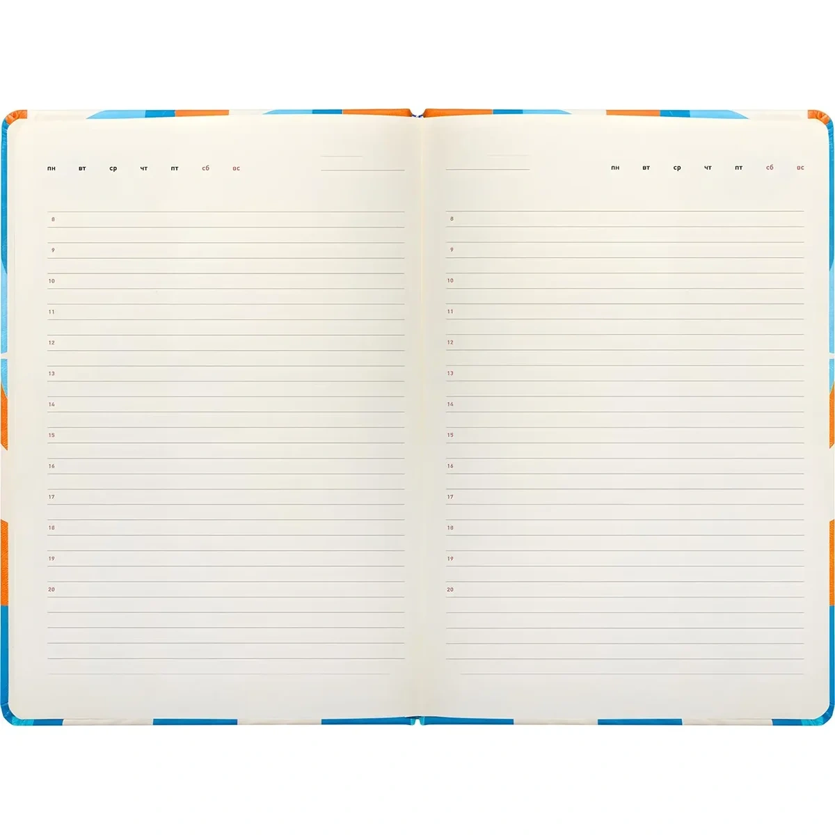 Внутренний блок содержит 136 белых листов с двукрасковой печатью, что способствует удобству ведения записей. Недатированный формат позволяет самостоятельно определять структуру записей, а ляссе внутри обеспечивает удобство навигации по записям. Линовка в линейку помогает структурировать заметки и планы.