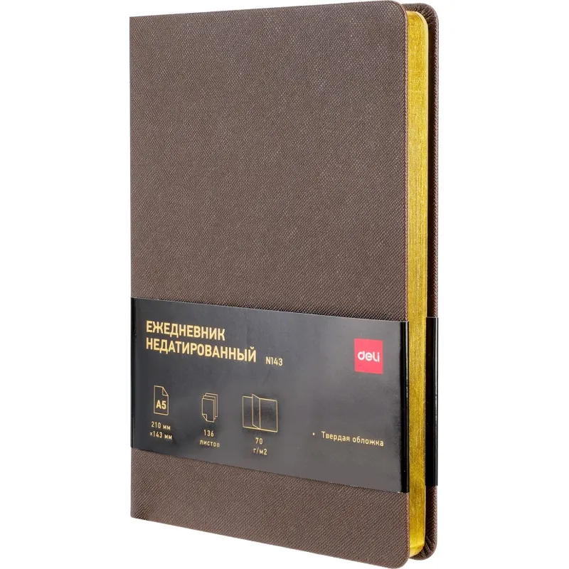 Ежедневник недатированный Deli Elegant, A5,136л,золотой обрез CN143-Brown