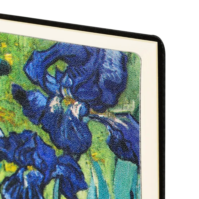 Ежедневник формата A5 с художественным оформлением обложки станет стильным инструментом для планирования и записи важной информации. Изделие имеет размер 143×210 мм и вертикальную ориентацию. Мягкая обложка с изображением картины Винсента Ван Гога «Ирисы» выполнена из искусственной кожи с покрытием Soft Touch, устойчивым к износу и загрязнениям. Обложка сохраняет привлекательный внешний вид даже при ежедневном использовании и защищает блокнот от повреждений в сумке или рюкзаке.