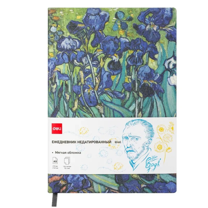 Ежедневник недатированный Deli VG, A5, 136л Ван Гог Ирисы CN146-Blue