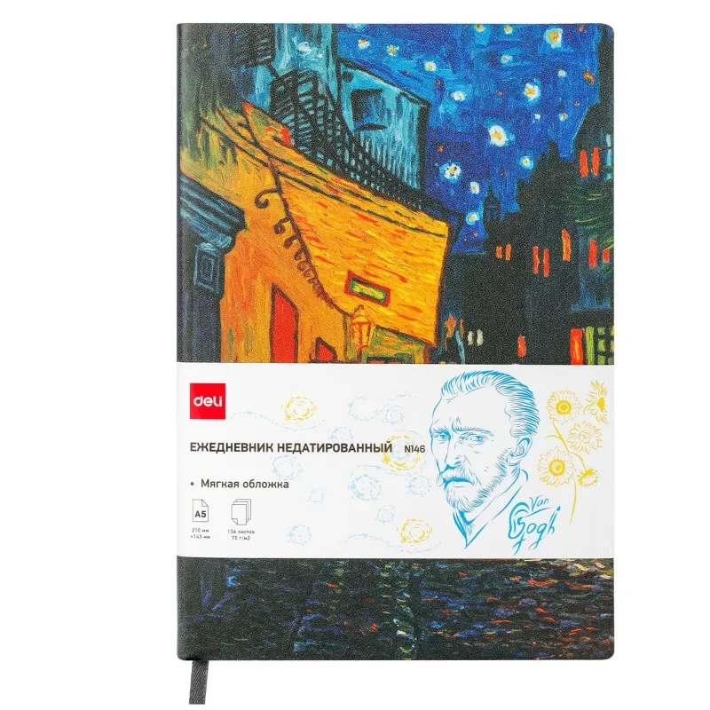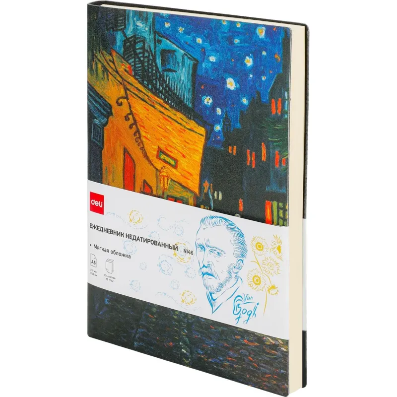 Ежедневник недатированный Deli VG,A5,136л Ван Гог Терраса кафе CN146-Black
