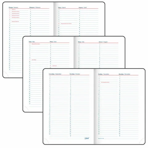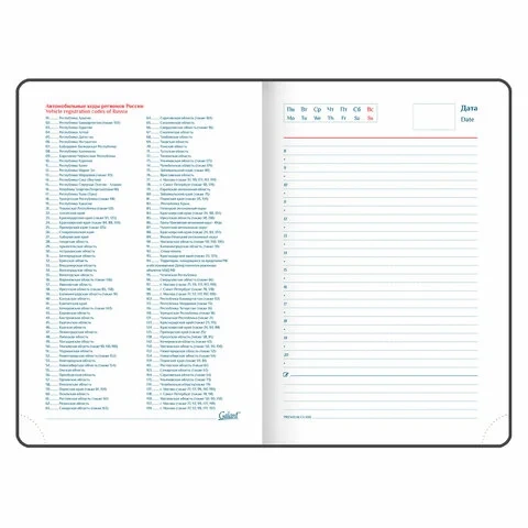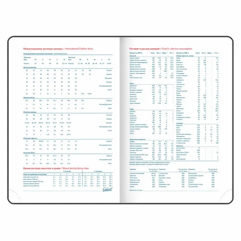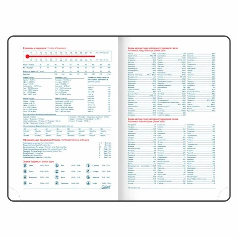 Ежедневник снабжен обширным справочным материалом. В конце расположены 7 страниц для записей и заметок.