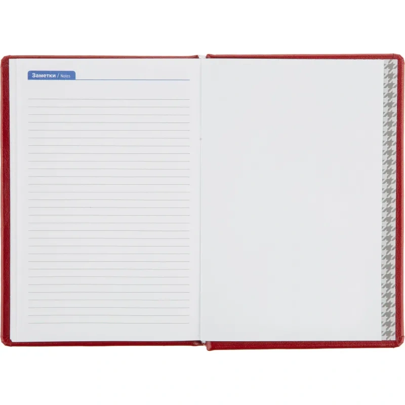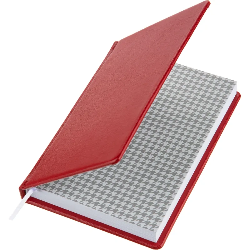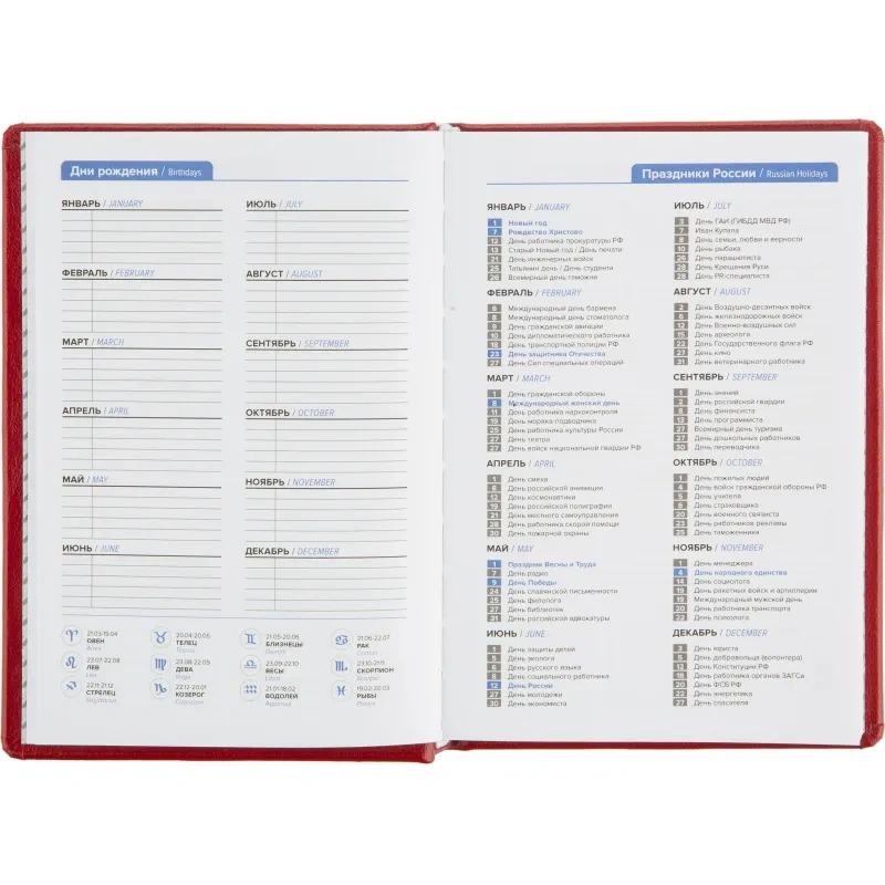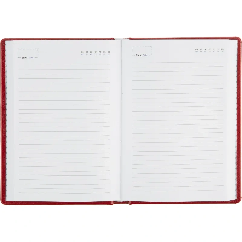 Еженедельник (150×213 мм) разработан для эффективного планирования и организации задач на неделю. Обложка изготовлена из натуральной кожи серии «Галант» с поролоновым наполнением, отличается однородной фактурой, высокой износостойкостью и приятной на ощупь поверхностью. Красный цвет подчёркивает деловой стиль. Для быстрого поиска нужной страницы предусмотрено белое ляссе.