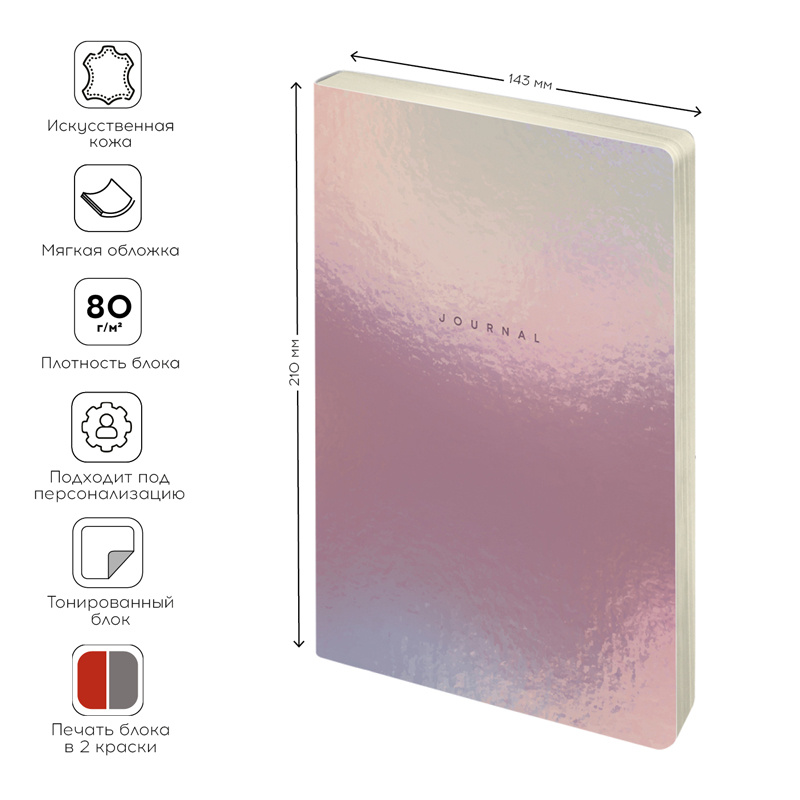 Ежедневник недатированный Greenwich Line Holography. Pink mirror А5, 136 листов, тонированный блок