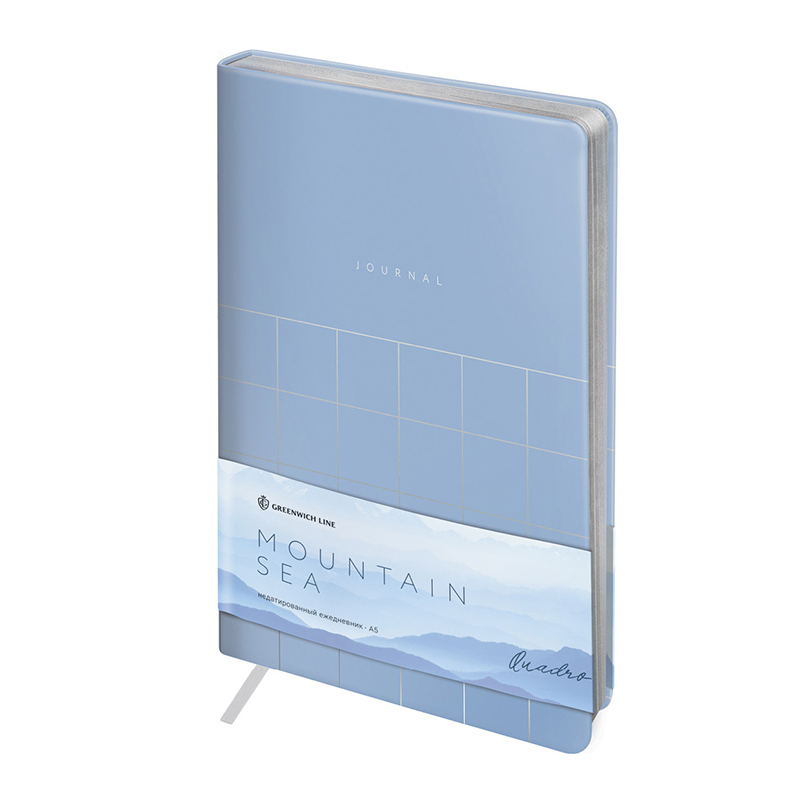 Серия «Mountain sea». Твердая обложка из искусственной кожа с тиснением серебряной фольгой или полноцветной печатью. Внутренний блок из высококачественной кремовой бумаги повышенной плотности 80 г/м2, пантонная печать в 2 краски. Фольгированный золотой или серебряный срез. Закладка-ляссе. Индивидуальная упаковка.