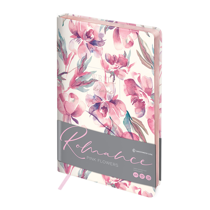 Ежедневник недатированный Greenwich Line Romance Pink flowers, A5, 136 листов, кожзам