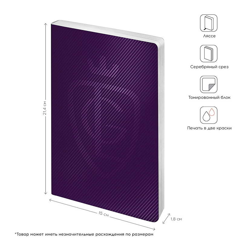 Серия «Royal book». Ультрамягкая soft-touch обложка из искусственной кожи отделкой глянцевым выборочным UV-лаком. Внутренний блок из высококачественной кремовой бумаги повышенной плотности 80 г/м2, пантонная печать в 2 краски. Срез блока отделан полуматовой серебряной фольгой. Закладка-ляссе. Индивидуальная упаковка.