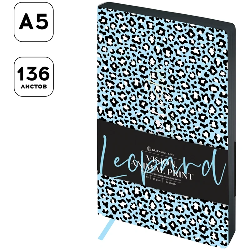 Ежедневник недатированный Greenwich Line Vision. Animal print. Leopard А5, 136 листов, тонированный блок, цветной срез