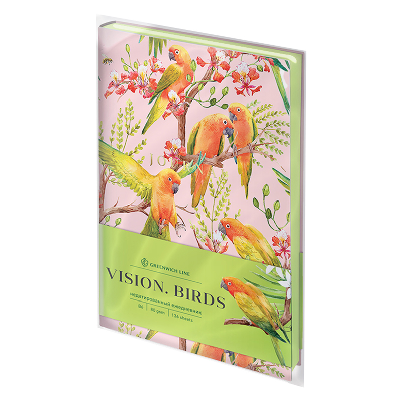 Ежедневник недатированный Greenwich Line Vision Birds, А6, 136 листов, иск. кожа
