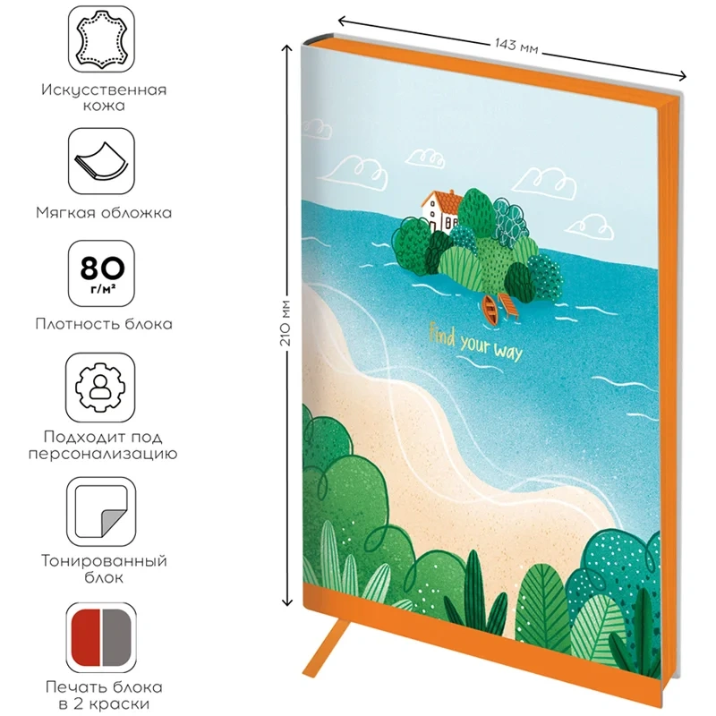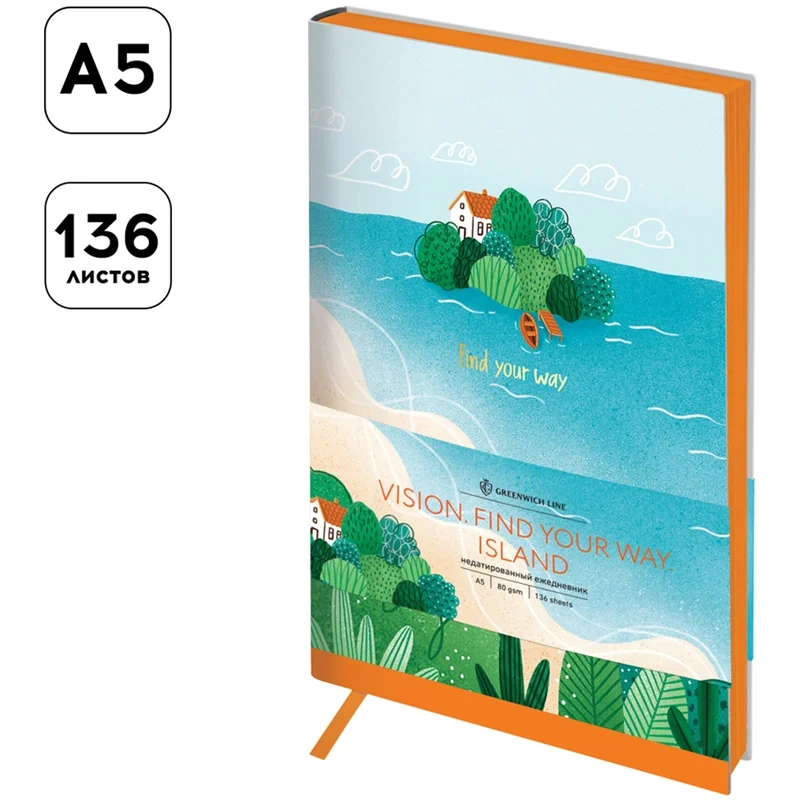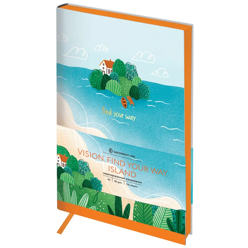 Ежедневник недатированный Greenwich Line Vision. Find your way. Island А5, 136 листов, тонированный блок, цветной срез