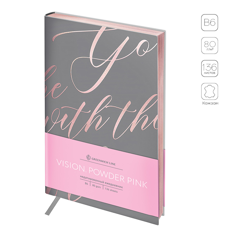 Ежедневник недатированный Greenwich Line Vision Powder pink, B6, 136 листов, кожзам