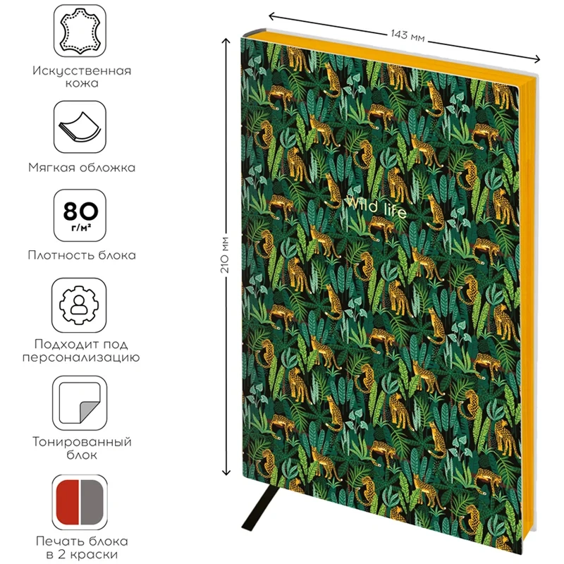 Ежедневник Greenwich Line Vision. Wild life ? отличный помощник и незаменимый атрибут деловой жизни. Внутренний блок ежедневника формата A5 вмещает 136 листов, которые созданы из высококачественной кремовой бумаги повышенной плотности 80 г/м?, а благодаря ультрамягкой двухслойной обложке из высококачественной экокожи изделие не захочется выпускать из рук. Ежедневник содержит справочный материал, имеет стильную закладку-ляссе и отлично подходит под персонализацию. Индивидуальная упаковка изделия гарантирует его целостность и сохранность.