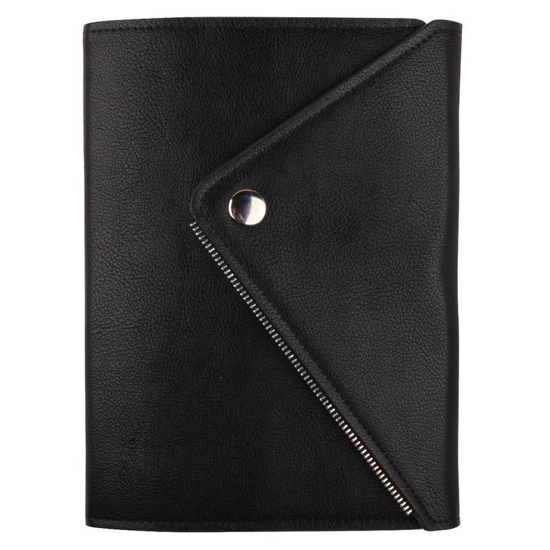 Ежедневник недатированный InFolio, цвет черный. Коллекция Grunge. Формат А5, размер изделия — 140x200 мм. Grunge — коллекция пронизана духом бунтарства и свободы. Этот стильный и своенравный ежедневник придется по душе целеустремленным и независимым личностям. Минималистическую обложку идеально дополняют декоративные элементы в виде молнии и кнопки. Обложка — съемная, высококачественная искусственная кожа. Блок: недатированный, 160 листов (320 страниц), прямые уголки, 1 ляссе, бумага: 100% белизны, плотность бумаги 70 г/кв.м., печать в 2 краски.Информационный блок: карта мира, российские праздники и памятные даты, разница во времени между Москвой и городами России, международные единицы мер, карта России, пищевая ценность продуктов, расход калорий при физических нагрузках, время распада алкоголя в крови, полезные интернет-ресурсы, мобильные приложения, планирование задач, дни рождения, важные даты.