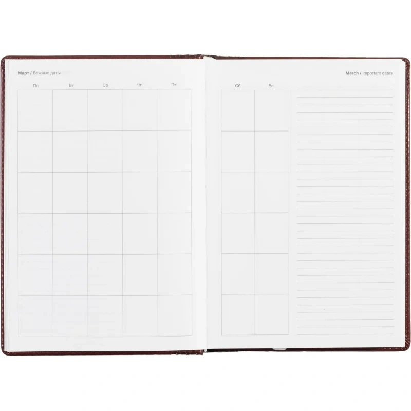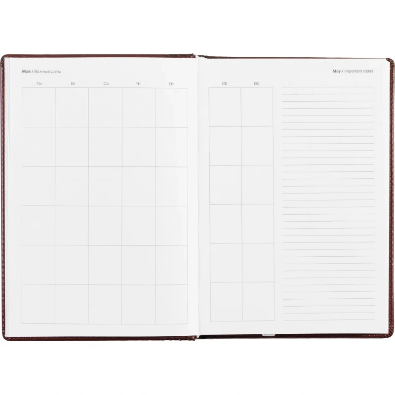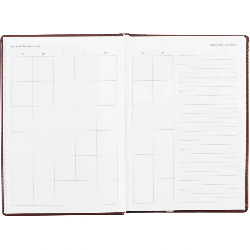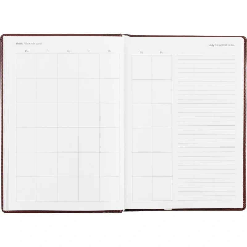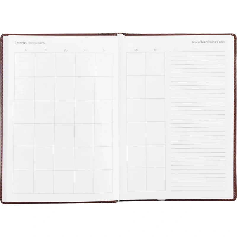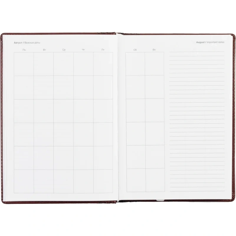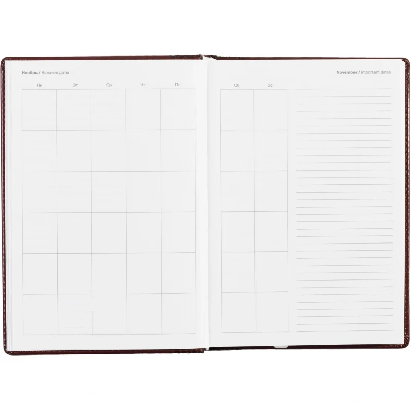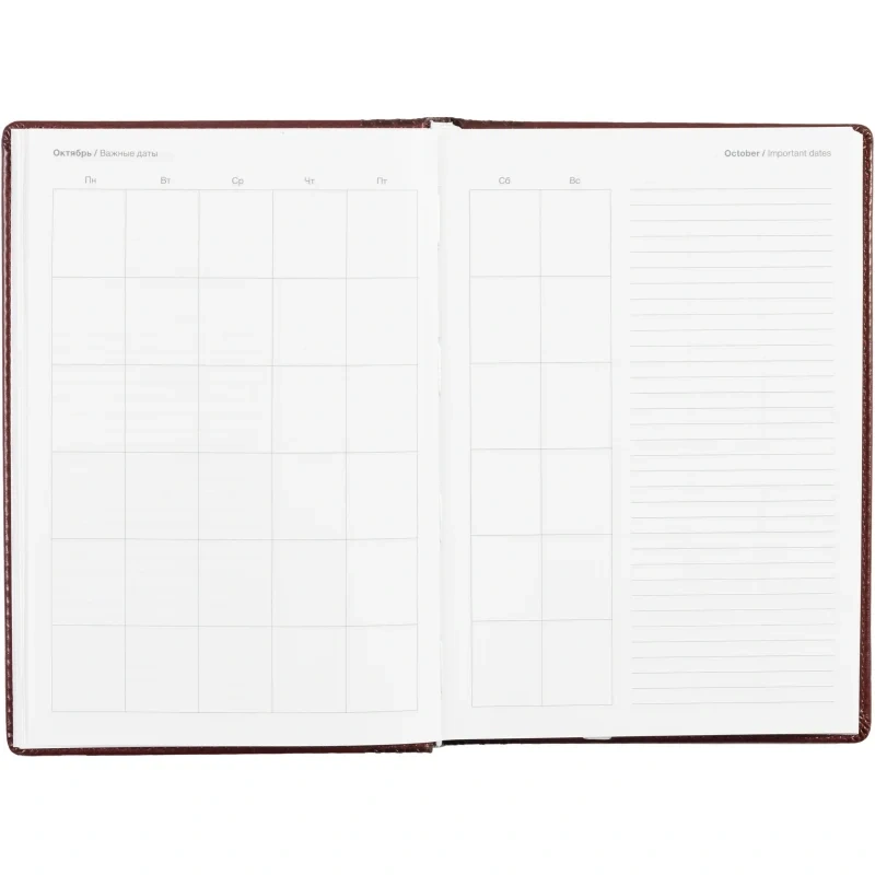 Изготовлен в России, тип крепления — сшивка. Прострочка по периметру выполнена. Ежедневник подходит для персонализации.