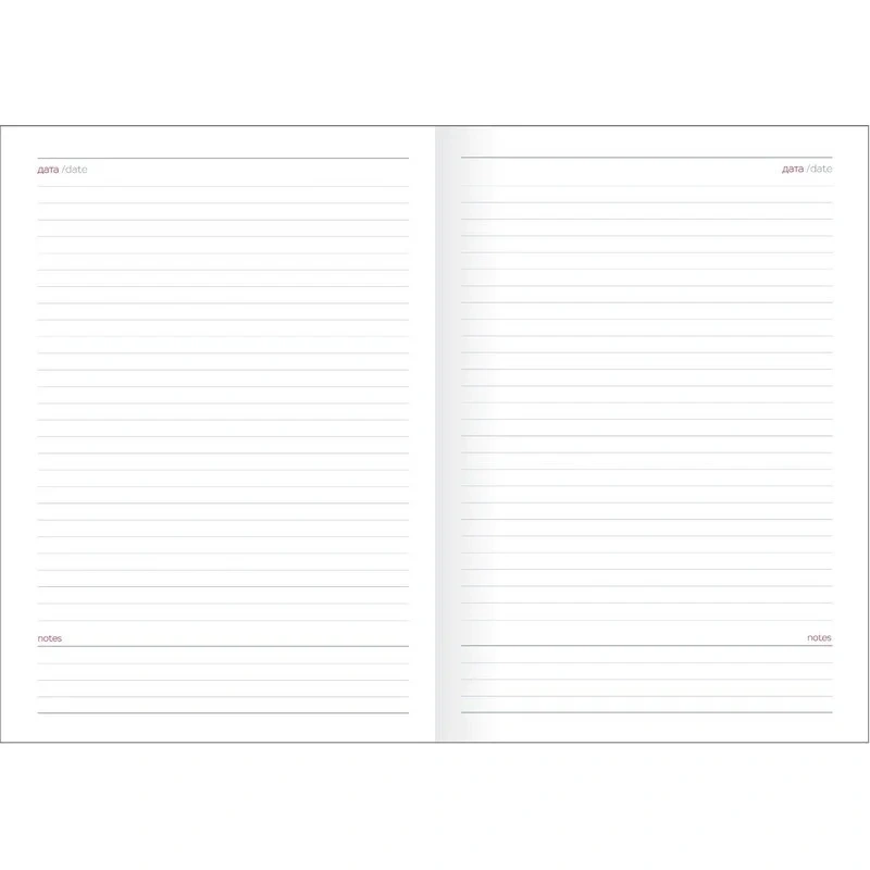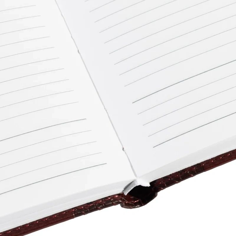 Внутренний блок состоит из 160 листов (320 страниц) белой офсетной бумаги с 100% белизной и плотностью 90 г/кв.м. Листы с линейкой напечатаны в две краски. Углы прямые, предусмотрена одна широкая шёлковая закладка-ляссе. Перфорация уголков отсутствует.
