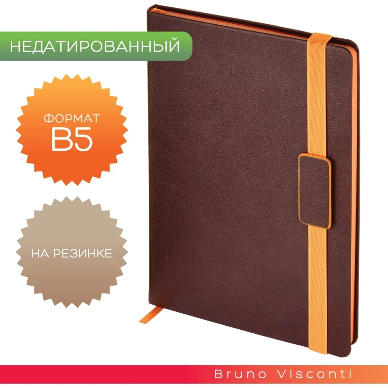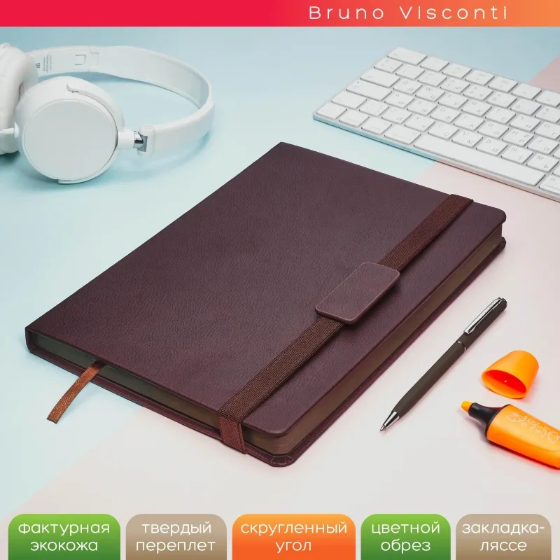 Ежедневник недатированный Bruno Visconti Leggenda искусственная кожа В5 136 листов коричневый с фиксирующей резинкой (коричневый обрез)