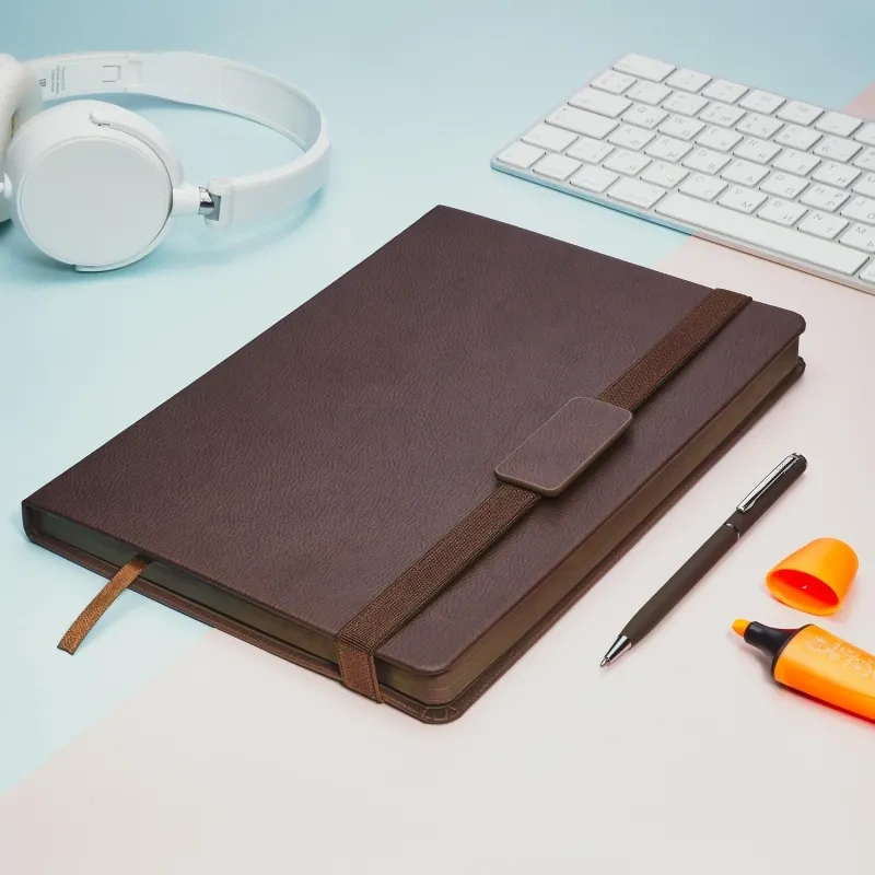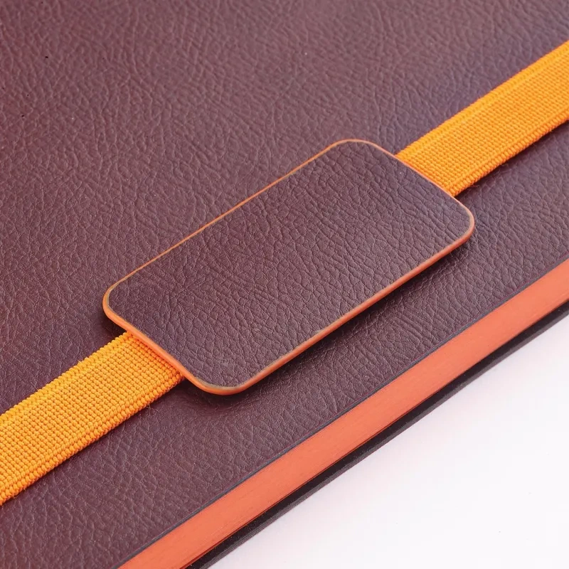 Ежедневник формата B5 с твёрдой обложкой коричневого цвета, выполненной под натуральную кожу с рельефной фактурой, станет стильным и практичным аксессуаром для офисных нужд. Яркие элементы дизайна, такие как оранжевый обрез и широкая вертикальная резинка, придают ежедневнику свежий и современный вид, а также обеспечивают надёжную защиту блока от повреждений. Плотность бумаги составляет 90 г/кв.м, и блок содержит 272 страницы (136 листов) тонированной бежевой бумаги с линейкой. Печать выполнена в два цвета.