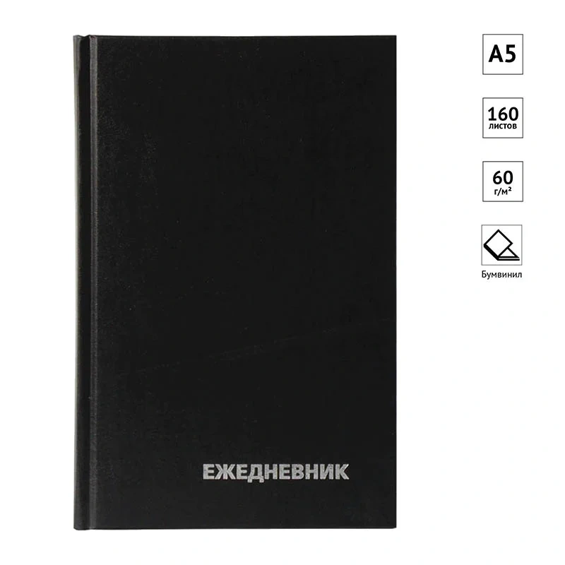 Незаменимый помощник для планирования встреч, звонков, переговоров. Отличный бизнес-аксессуар. Обложка - твердый картон, бумвинил с тиснением фольгой. Удобный формат - А5. Прошитый переплет надежно держит блок. Блок 160 листов, офсет, белый.