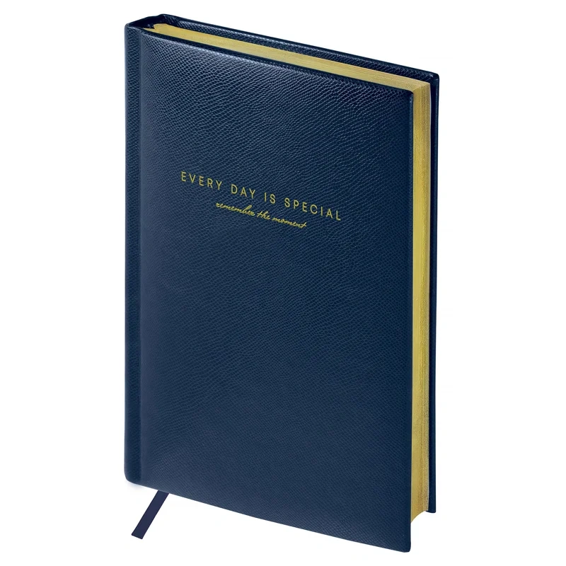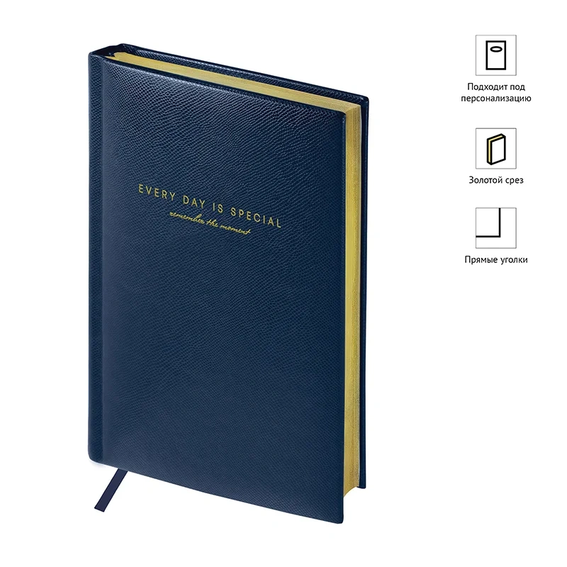 Ежедневник недатированный формата А5 из коллекции «Dallas». Обложка изготовлена из высококачественного кожзаменителя с поролоновой прослойкой, цвет обложки - синий. Подходит для всех видов полиграфического тиснения. Внутренний блок состоит из 136 листов офсетной бумаги плотностью 70 г/м2, печать блока в 2 краски, справочный материал. На форзацах географические карты России и Мира. Удобная закладка-ляссе.
