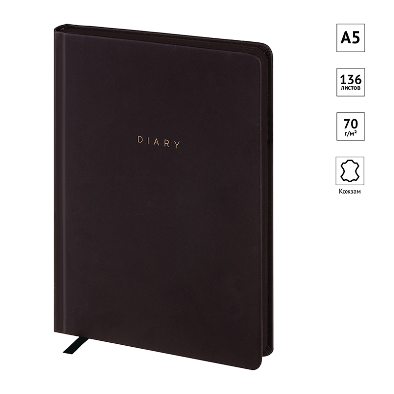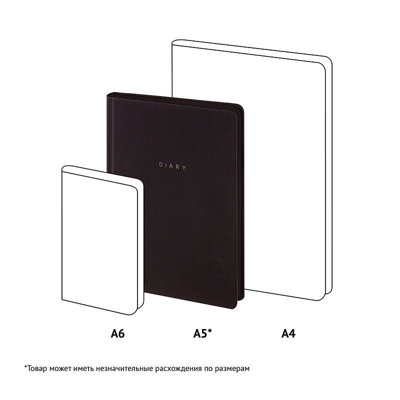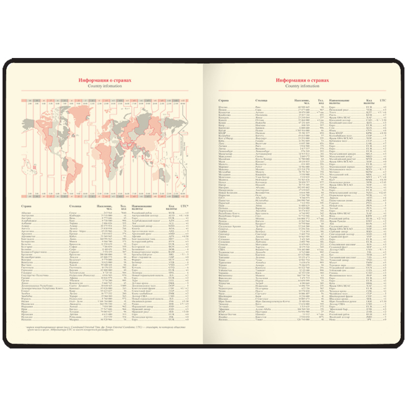 Ежедневник недатированный формата А5 из новой коллекции «Grace». Обложка изготовлена высококачественного кожзаменителя c эффектом soft-touch, цвет обложки - черный. Срез блока в цвет обложки. Внутренний блок состоит из 136 листов офсетной бумаги плотностью 70 г/м2, печать блока в 2 краски, справочный материал. Удобная закладка-ляссе и перфорированные уголки.