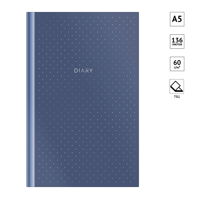 Незаменимый помощник для планирования встреч, звонков, переговоров. Отличный бизнес-аксессуар. Обложка - 7БЦ, украшена ламинацией. Удобный формат - А5. Прошитый переплет надежно держит блок. Блок 136 листов, офсет, белый.