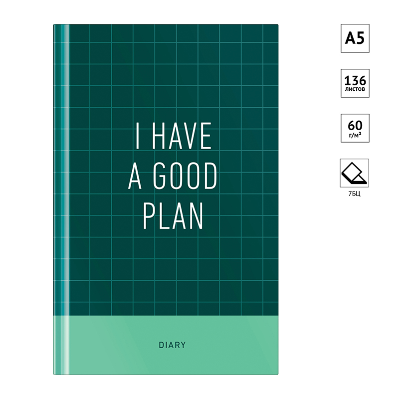 Незаменимый помощник для планирования встреч, звонков, переговоров. Отличный бизнес-аксессуар. Обложка - 7БЦ, украшена ламинацией. Удобный формат - А5. Прошитый переплет надежно держит блок. Блок 136 листов, офсет, белый.