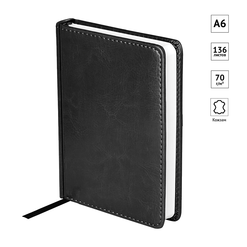 Ежедневник недатированный Officespace Nebraska черный, А6, 136 листов, обложка с поролоном