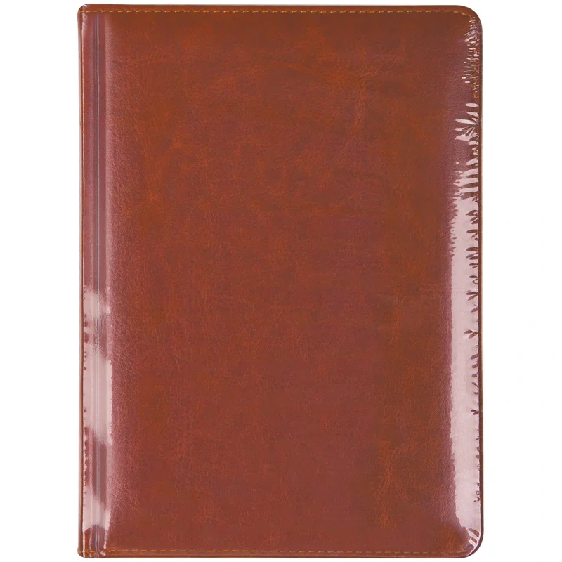 Ежедневник недатированный формата А5 из коллекции «Nebraska». Обложка изготовлена из высококачественного кожзаменителя, имитирующего натуральную глянцевую кожу, с поролоновой прослойкой, цвет обложки - коричневый. Подходит для всех видов полиграфического тиснения. Внутренний блок состоит из 136 листов офсетной бумаги плотностью 70 г/м2, печать блока в 2 краски, справочный материал. На форзацах географические карты России и Мира. Удобная закладка-ляссе и перфорированные уголки.