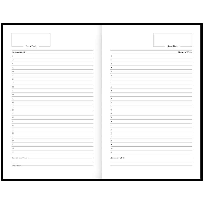 Незаменимый помощник для планирования встреч, звонков, переговоров. Отличный бизнес-аксессуар. Обложка - твердый картон, отделка ламинацией. Удобный формат - А5. Прошитый переплет надежно держит блок. Блок 160 листов, офсет 100% белизны, плотность 60 гр/м2.