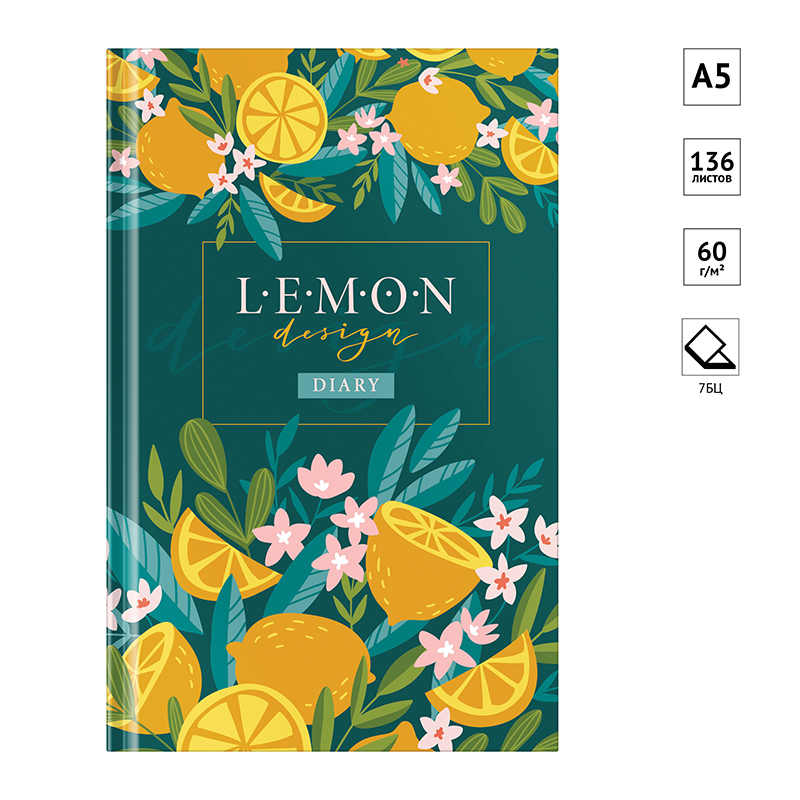 Ежедневник недатированный Officespace Цветы Juicy lemon, А5, 136 листов, твердая обложка
