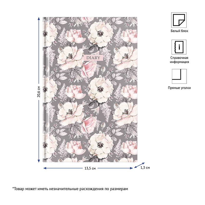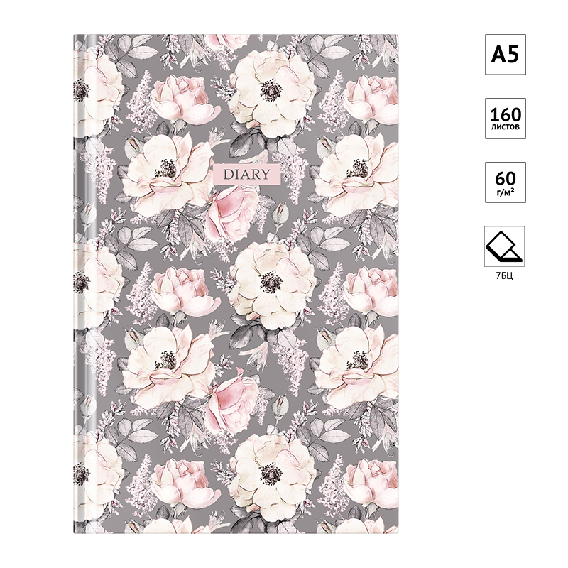 Ежедневник недатированный Officespace Цветы Wild rose, А5, 160 листов, твердая обложка
