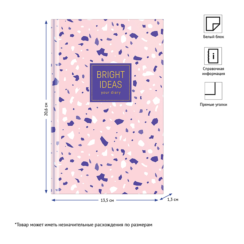 Незаменимый помощник для планирования встреч, звонков, переговоров. Отличный бизнес-аксессуар. Обложка - 7БЦ, украшена ламинацией. Удобный формат - А5. Прошитый переплет надежно держит блок. Блок 136 листов, офсет, белый.