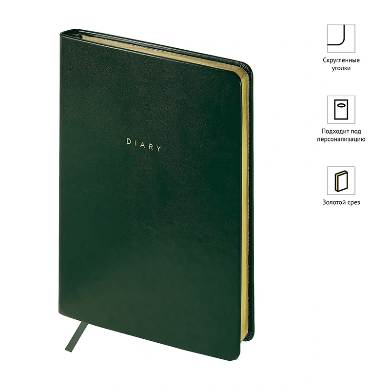 Ежедневник недатированный Officespace Windsor зеленый, А5, 136 листов, кожзам