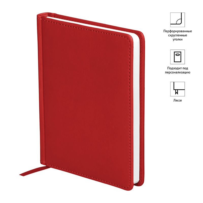 Ежедневник недатированный формата А6 из коллекции «Winner». Обложка изготовлена из высококачественного кожзаменителя с гладкой мягкой матовой поверхностью, с поролоновой прослойкой, цвет обложки - красный. Подходит для всех видов полиграфического тиснения. Внутренний блок состоит из 136 листов офсетной бумаги плотностью 70 г/м2, печать блока в 2 краски, справочный материал. На форзацах географические карты России и Мира. Удобная закладка-ляссе и перфорированные уголки.