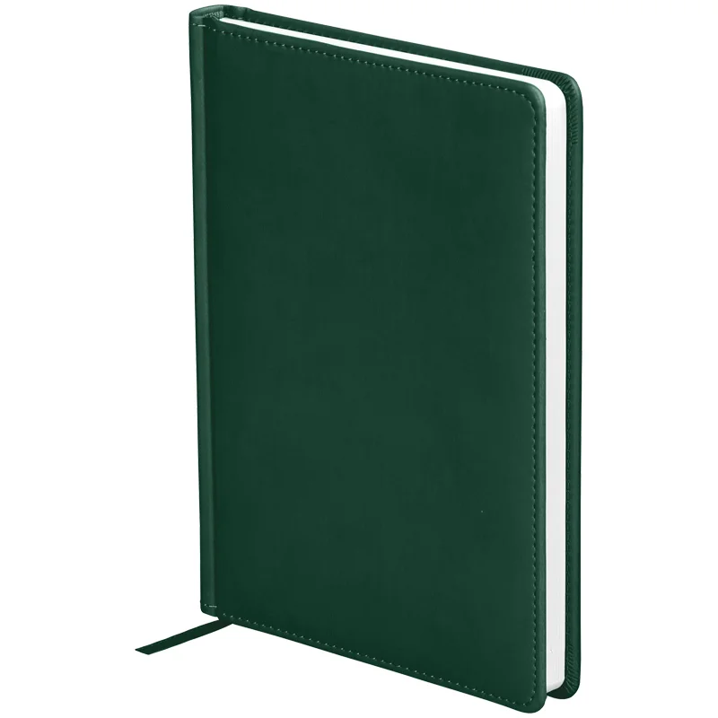Ежедневник недатированный формата А5 из коллекции «Winner». Обложка изготовлена из высококачественного кожзаменителя с гладкой мягкой матовой поверхностью, с поролоновой прослойкой, цвет обложки - зеленый. Подходит для всех видов полиграфического тиснения. Внутренний блок состоит из 136 листов офсетной бумаги плотностью 70 г/м2, печать блока в 2 краски, справочный материал. На форзацах географические карты России и Мира. Удобная закладка-ляссе и перфорированные уголки.