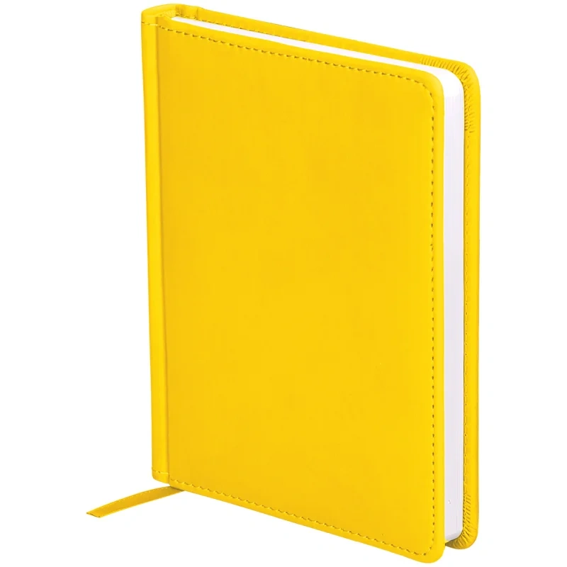 Ежедневник недатированный формата А6 из коллекции «Winner». Обложка изготовлена из высококачественного кожзаменителя с гладкой мягкой матовой поверхностью, с поролоновой прослойкой, цвет обложки - желтый. Подходит для всех видов полиграфического тиснения. Внутренний блок состоит из 136 листов офсетной бумаги плотностью 70 г/м2, печать блока в 2 краски, справочный материал. На форзацах географические карты России и Мира. Удобная закладка-ляссе и перфорированные уголки.