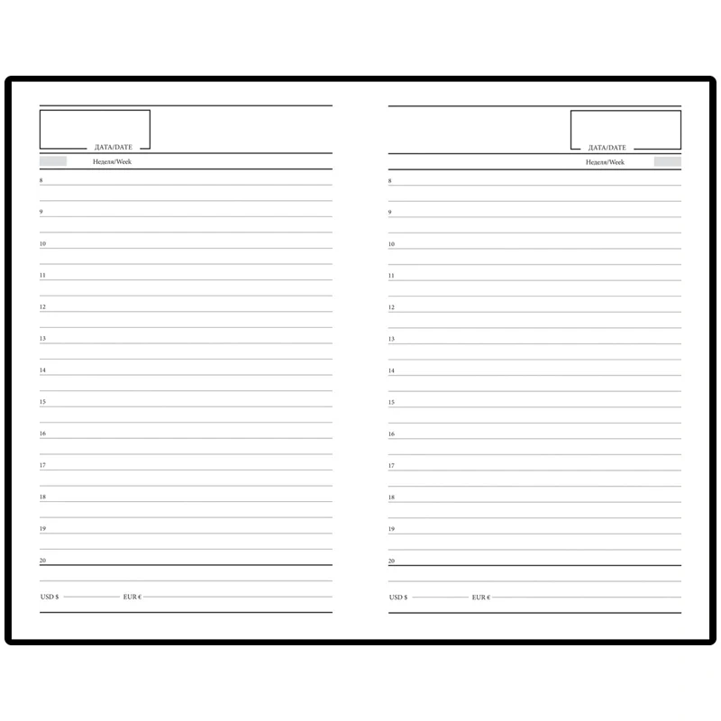 Незаменимый помощник для планирования встреч, звонков, переговоров. Отличный бизнес-аксессуар. Обложка - твердый картон, бумвинил с тиснением фольгой. Удобный формат - А5. Прошитый переплет надежно держит блок. Блок 160 листов, офсет, белый.