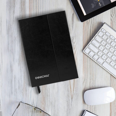 Ежедневник недатированный Офисмаг черный, A5, 160 листов, под кожу, магнитный клапан