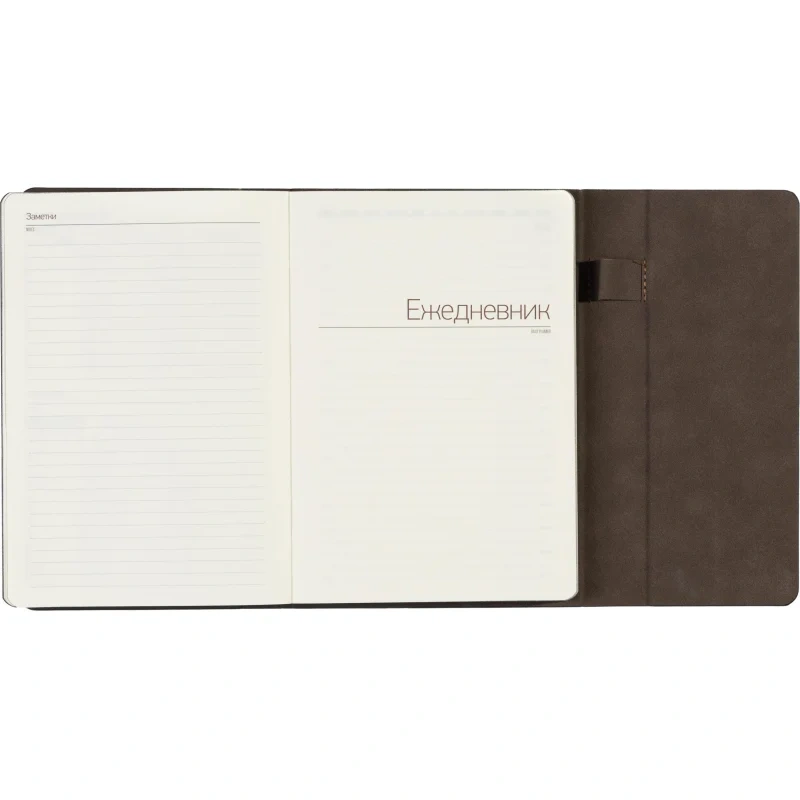 Ежедневник украшает цветной обрез, соответствующий тону обложки, и бархатистая отделка внутренней стороны, что делает его не только удобным, но и стильным аксессуаром.