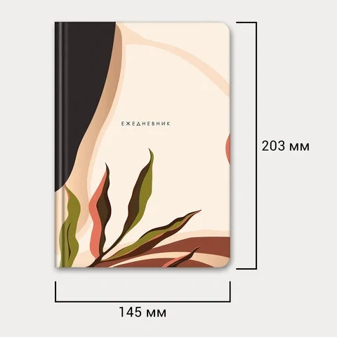 Внутренний блок состоит из 128 листов офсетной бумаги плотностью 60 г/м2. Обложка 7БЦ (твердый переплет с матовой пленкой) обеспечивает долговечность использования. Ежедневник снабжен резинкой-фиксатором, которая предотвращает его случайное открытие в сумке или портфеле.