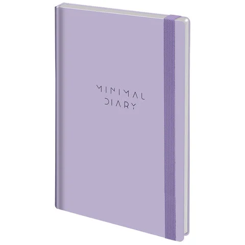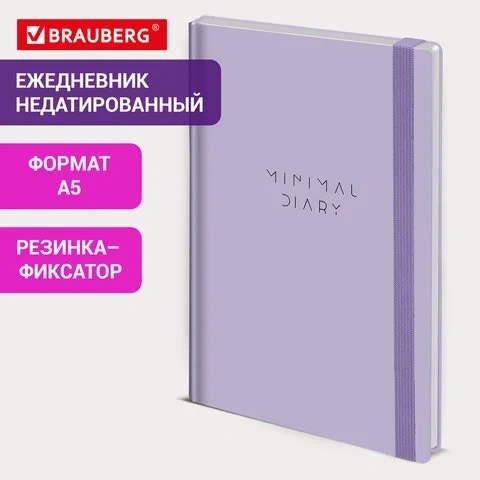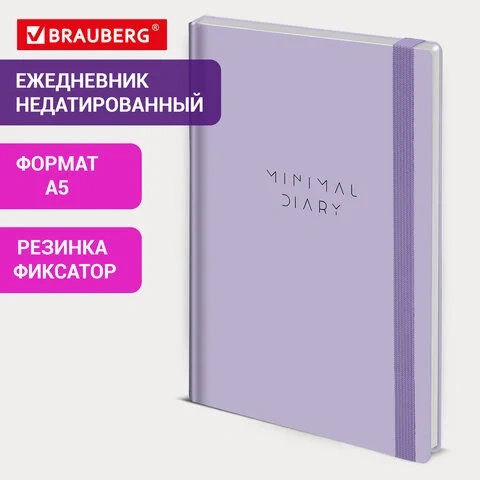Ежедневник недатированный с резинкой А5 145х203 мм, BRAUBERG, твердый, 160 л., 'Minimal', сиреневый,