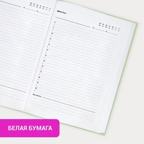 Отличительная особенность — наличие полей для проставления дат. Они не пропечатаны, что позволяет владельцу выделять под каждый день необходимое количество листов и записывать важные сведения. В конце ежедневника предусмотрены 8 страниц для дополнительных записей и заметок.