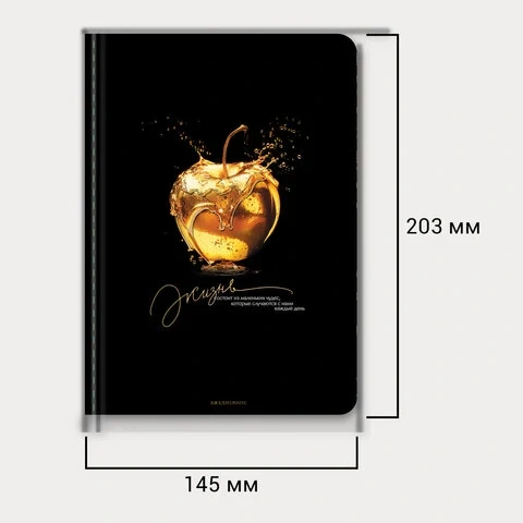 Ежедневник недатированный с резинкой А5 145х203 мм, BRAUBERG, твердый, фольга, 128 л., 'Apple', 1162