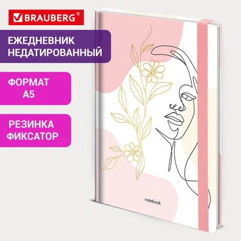 Ежедневник недатированный с резинкой А5 145х203 мм, BRAUBERG, твердый, фольга, 128 л., 'Figure', 116