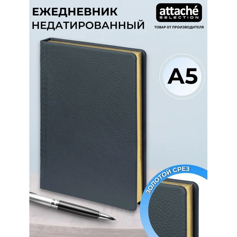 Ежедневник недатированный Attache Selection Scotland натуральная кожа А5 160 листов синий (золотистый обрез)