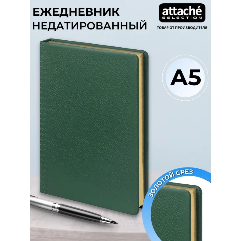 Ежедневник недатированный Attache Selection Scotland натуральная кожа А5 160 листов зелёный (золотистый обрез)