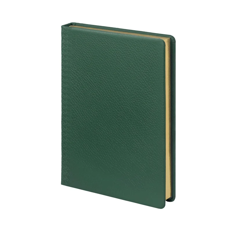 Еженедельник (143×205 мм) подходит для планирования и ведения записей в течение всего года. Обложка изготовлена из натуральной кожи Флоттер с поролоном и тиснением «гусиная лапка», отличается насыщенным зелёным цветом и приятной на ощупь фактурой. Благодаря золотому ляссе легко найти нужную страницу.