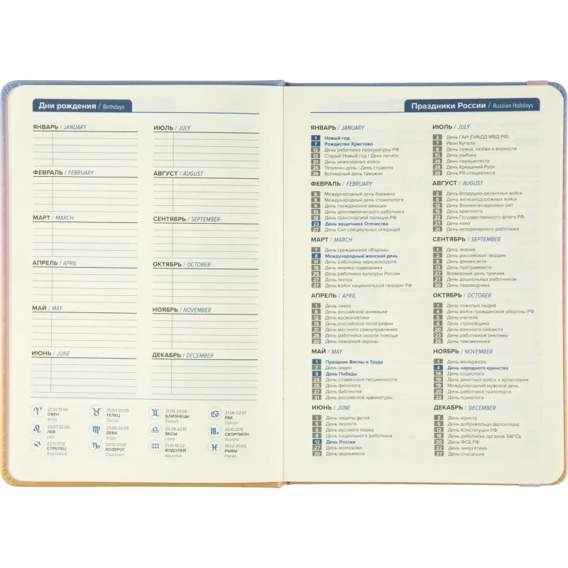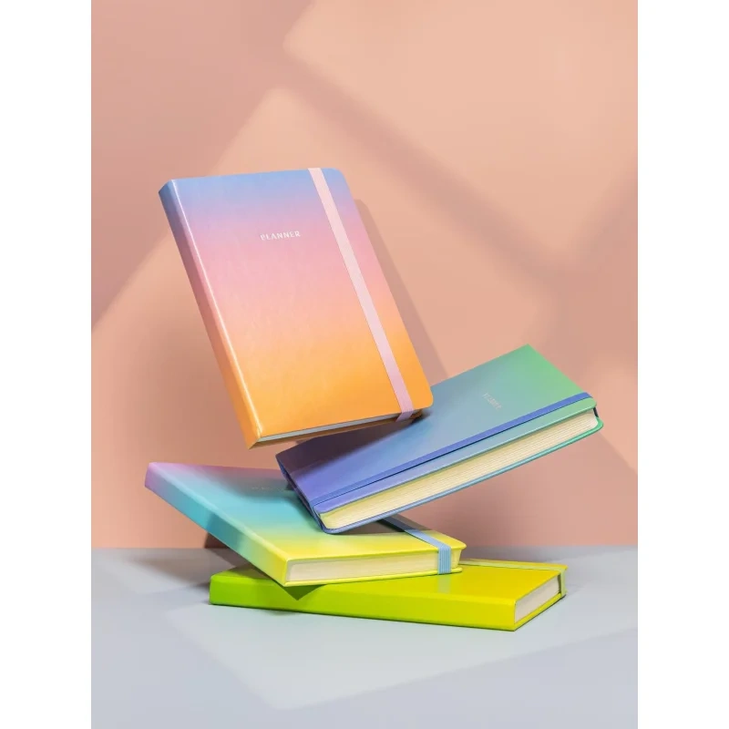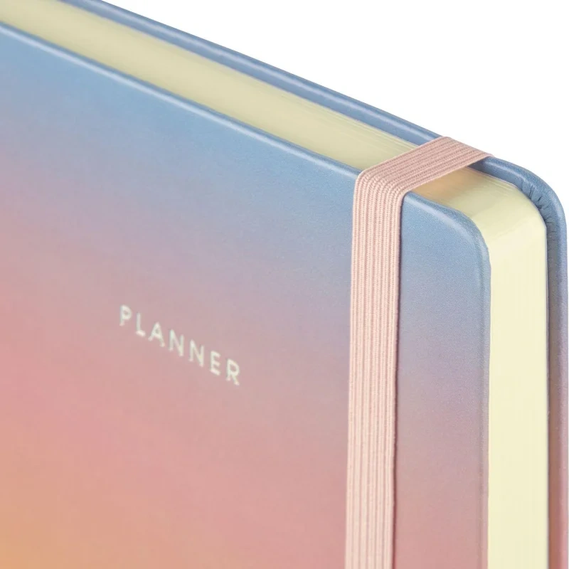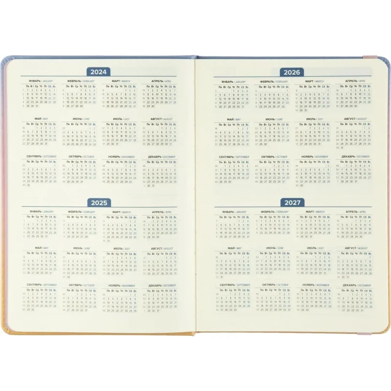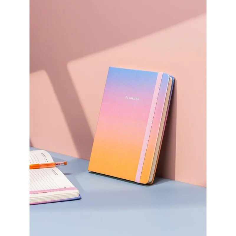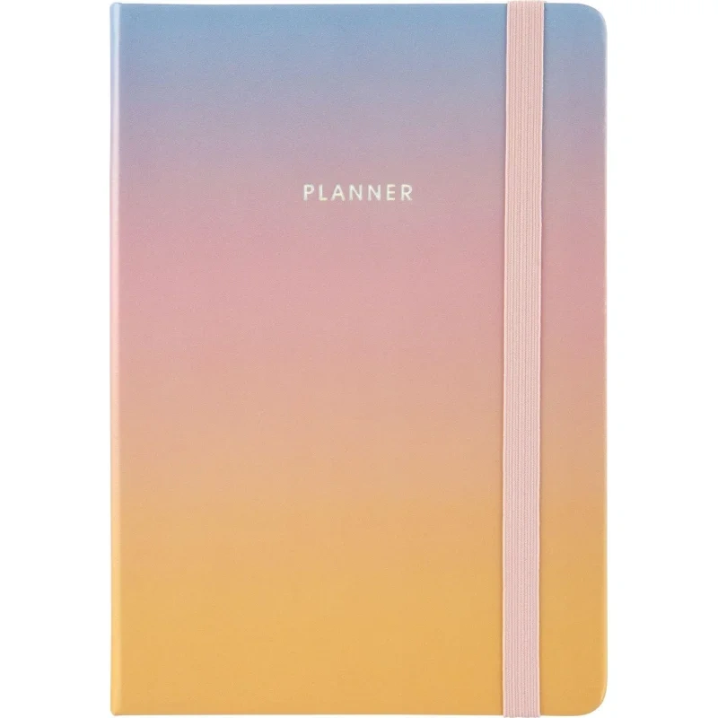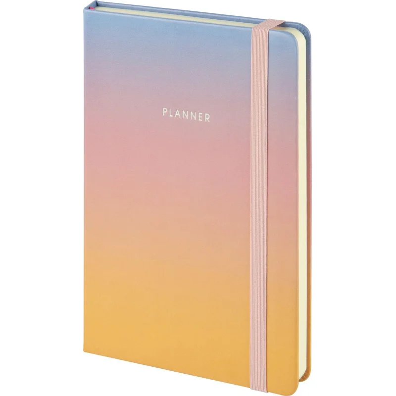 Ежедневник недатированный Attache Selection А5 136 листов фиолетовый/розовый с фиксирующей резинкойНедатированный ежедневник формата A5 подойдёт для ведения повседневных записей, планирования задач и фиксирования важных событий. Размер изделия 130x210 мм обеспечивает баланс между компактностью и достаточной рабочей площадью для заметок. Блок включает 136 листов с линовкой, изготовлен из бежевой офсетной бумаги плотностью 80 г/кв.м. Печать выполнена в две краски. Предусмотрен встроенный календарь на 4 года.Обложка выполнена из полиуретана комбинированного цвета, оформлена в однотонном стиле с тиснением фольгой. Жёсткая конструкция обеспечивает защиту от повреждений, а сшивка гарантирует долговечность блока при частом использовании. Ежедневник оснащён фиксирующей резинкой, которая удерживает изделие в закрытом положении. Скруглённые углы листов делают использование более комфортным. Вертикальная ориентация подходит для стандартного способа ведения записей.Изделие не содержит ляссе, кармана и петли под ручку, но поставляется в подарочной упаковке и подходит для персонализации.