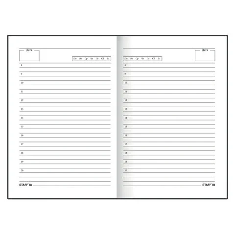 Отличительная особенность - это поля, где можно проставить даты. Они не пропечатаны, поэтому владелец может отводить на каждый день сколько угодно листов и записывать все важные сведения. В конце ежедневника есть 4 страницы для записей и заметок.