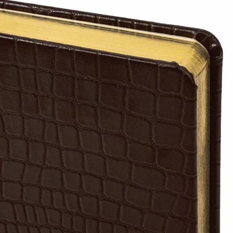 Твердая обложка, стилизованная под кожу крокодила, подходит для горячего тиснения. Срез ежедневника фольгирован под 'золото', что придает ему особый шарм. Дополнением является закладка-ляссе, с помощью которой при необходимости можно быстро открыть ежедневник на нужной странице. Ежедневник снабжен обширным справочным материалом. В конце имеются 6 страниц для записей и заметок.